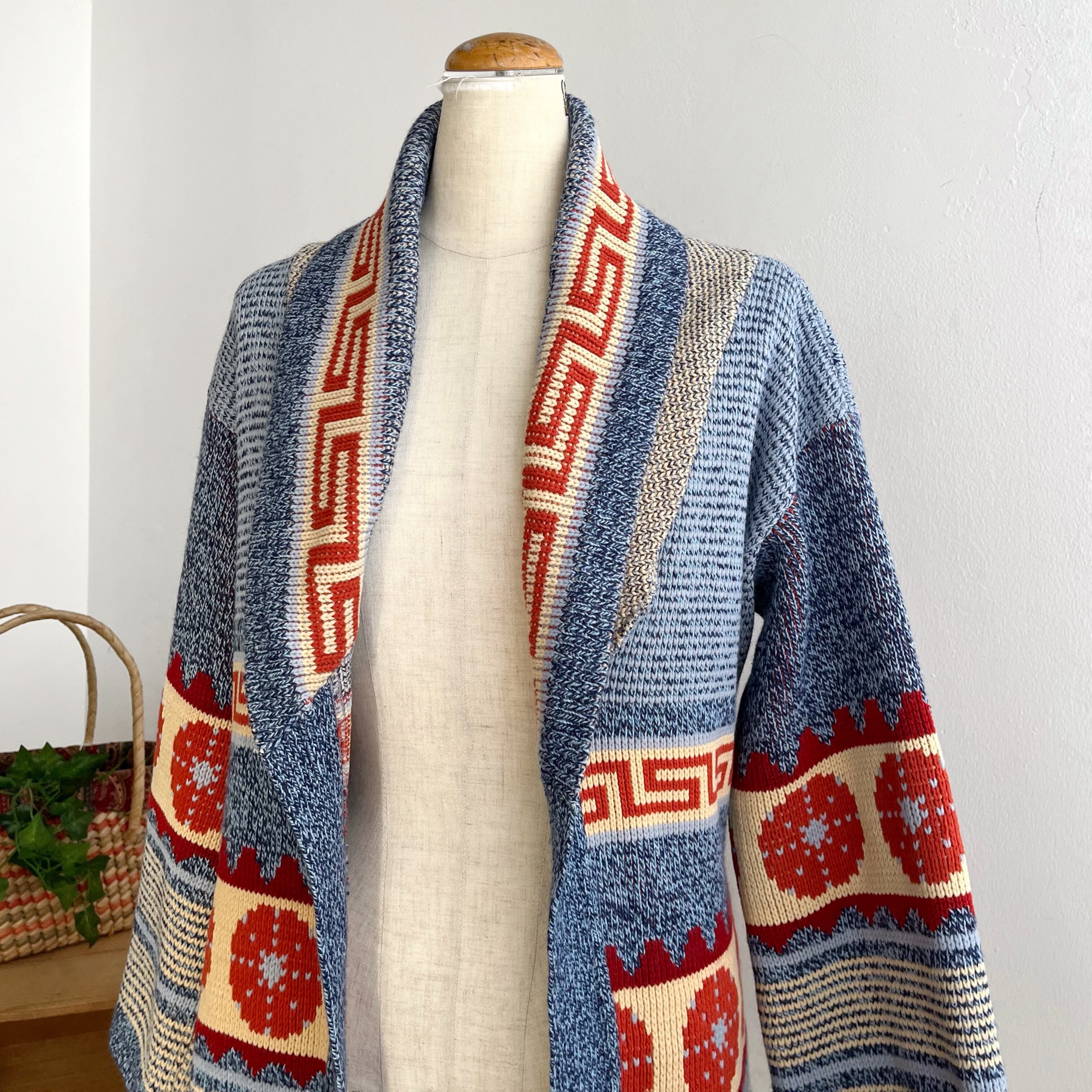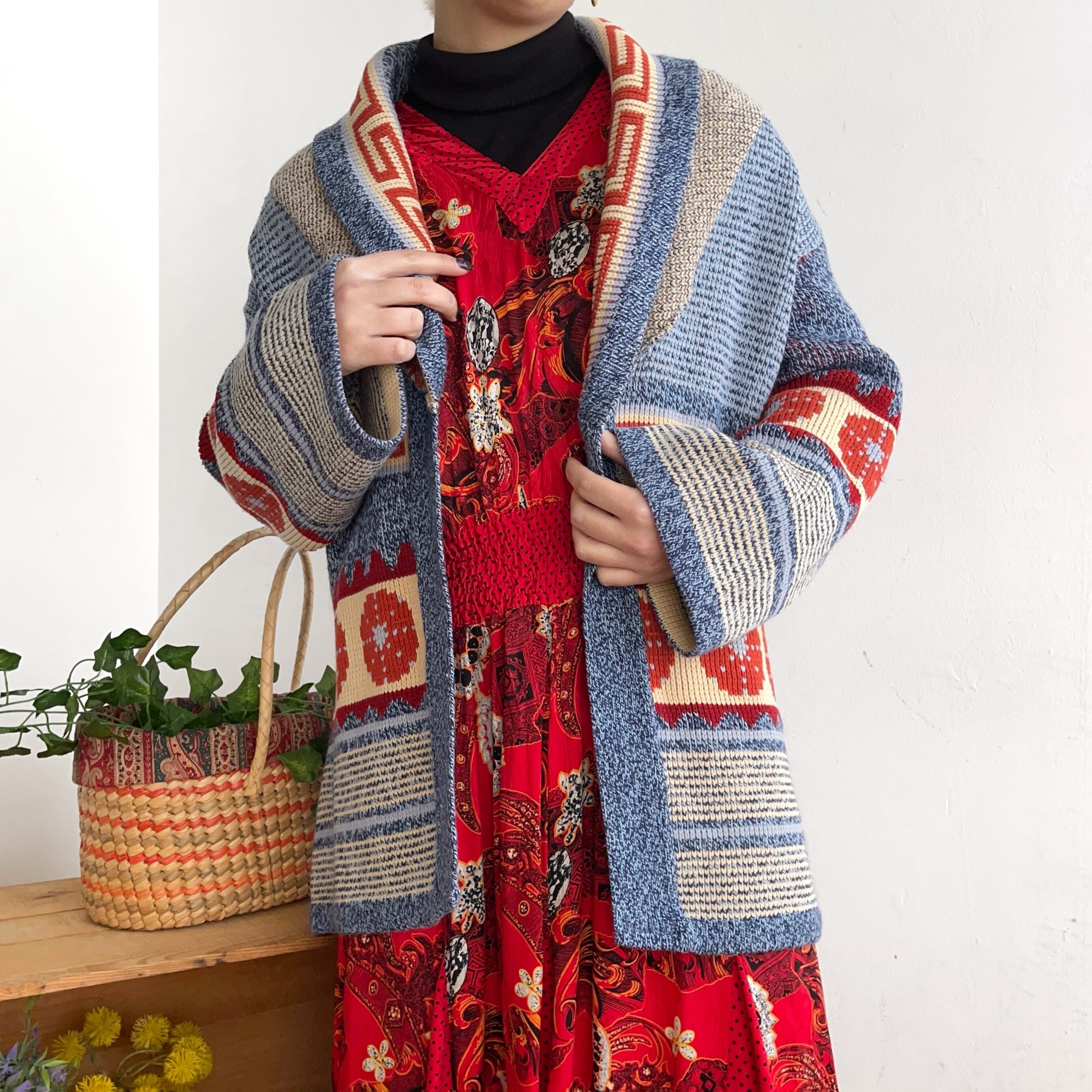 オリエンタルなデザインが可愛いニットカーディガンです。