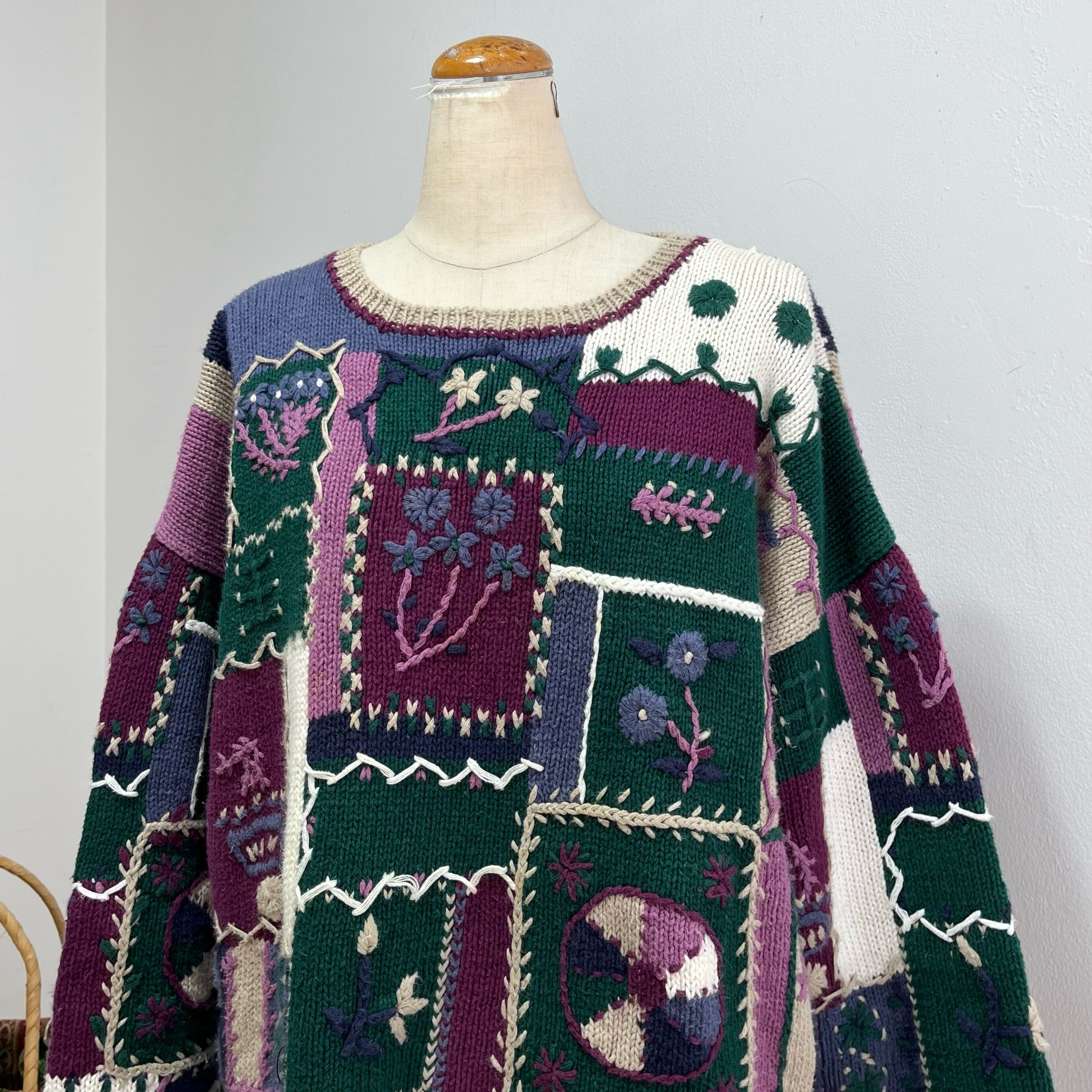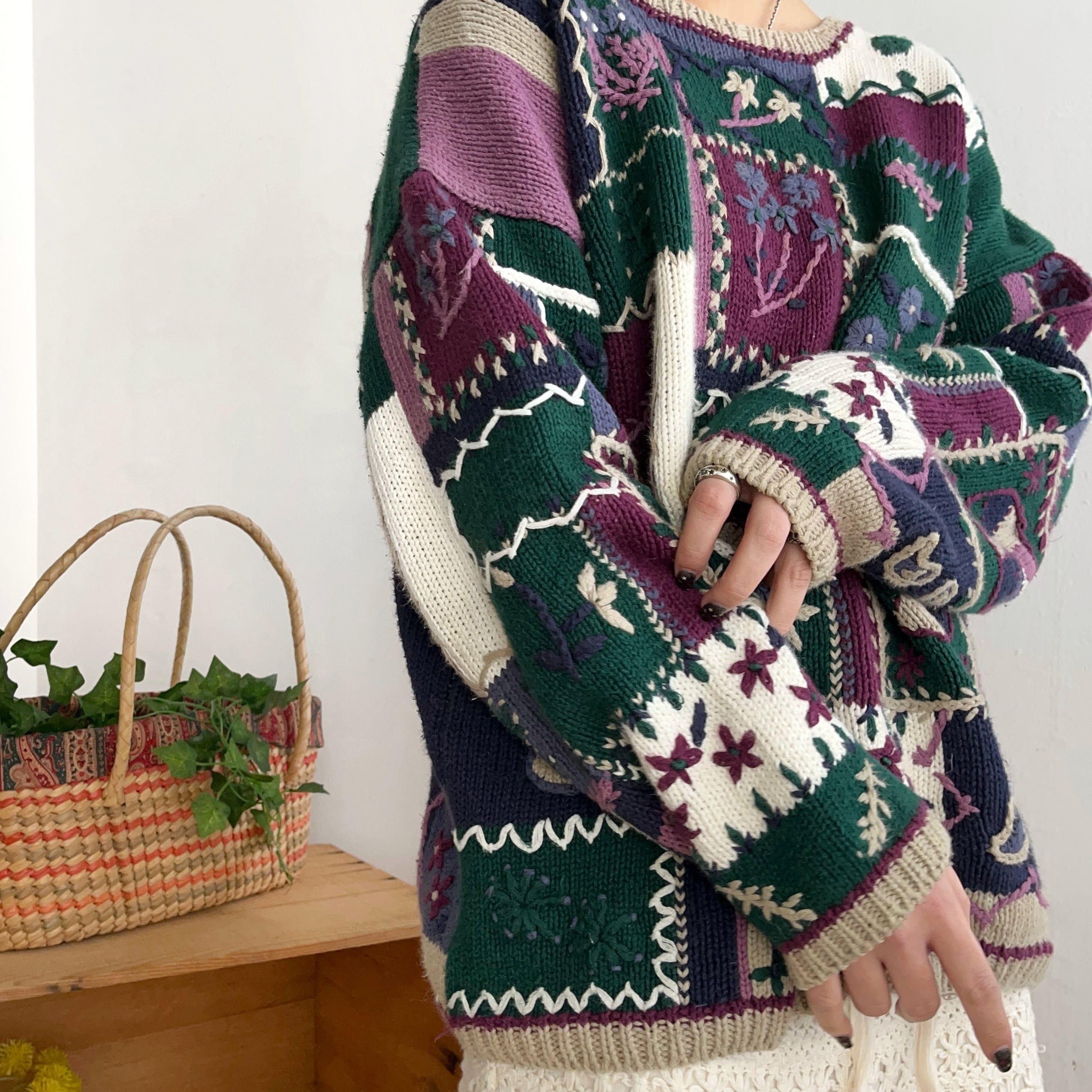 背中まで柄が入っているので後ろ姿もキュートで、ハンドニット特有のほっこり感が可愛い一着。