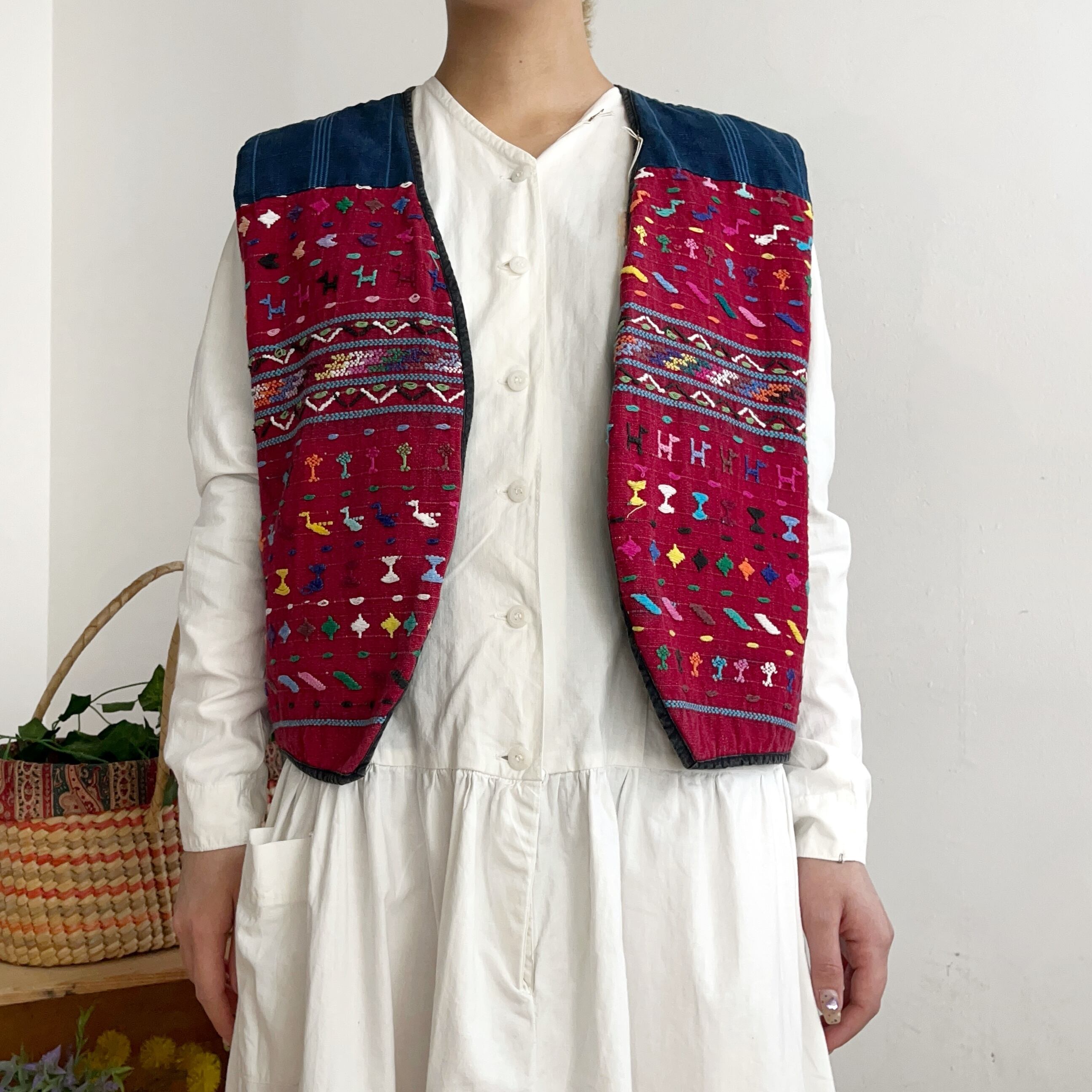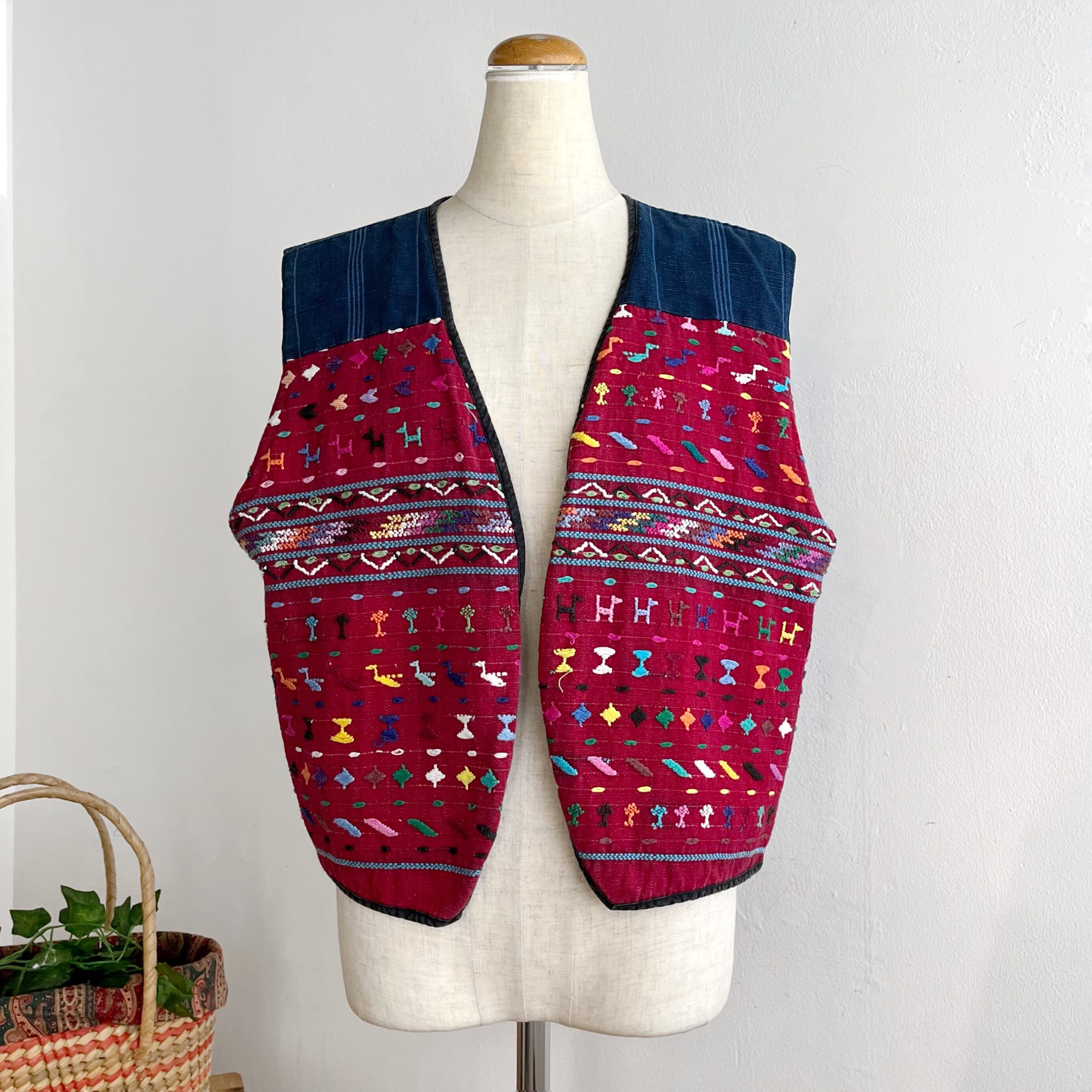 カラフルで細かい刺繍がたっぷりとデザインされていて、背中はストライプ柄のインディゴ素材になっております。