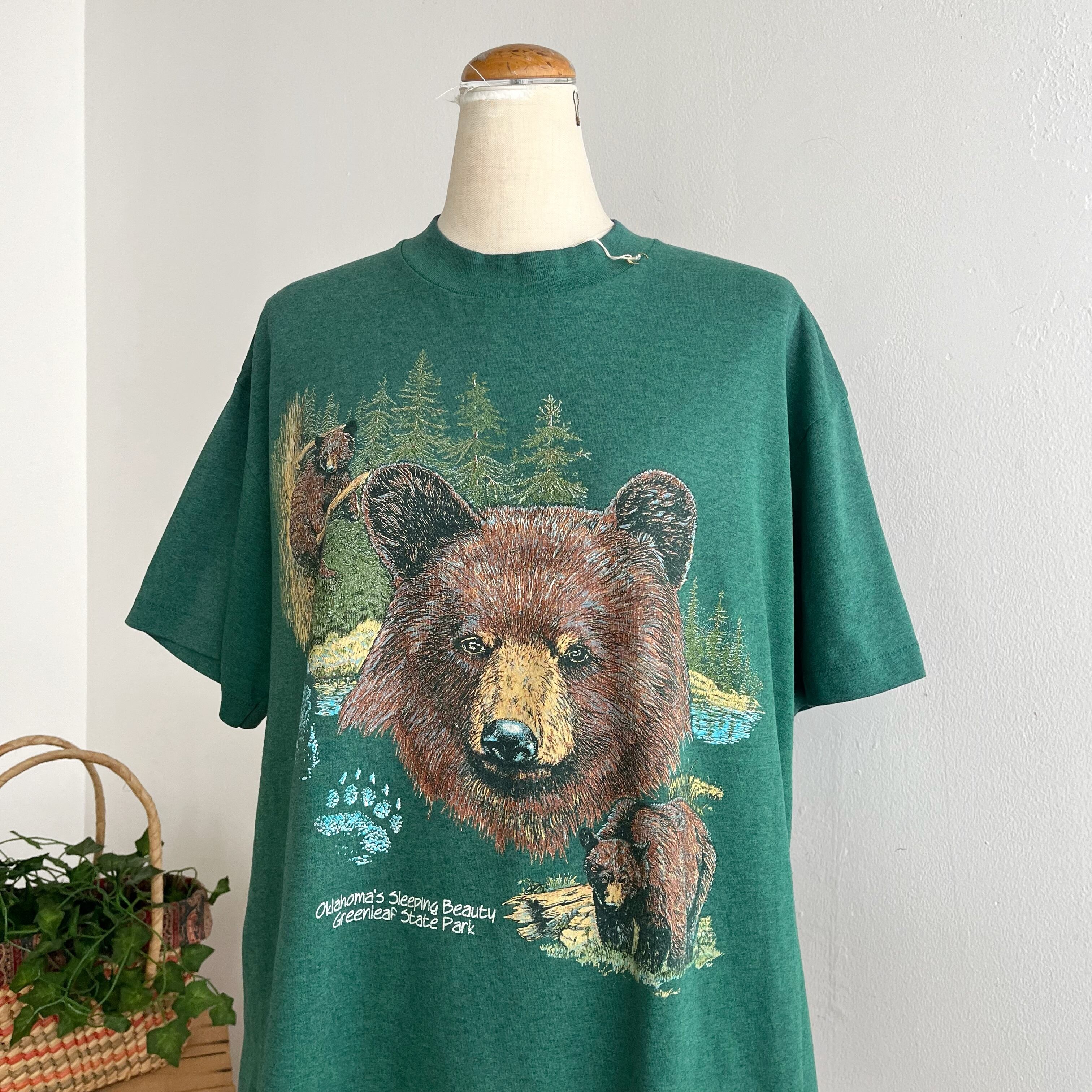 リアルなお顔の熊が大きくプリントされたTシャツです。