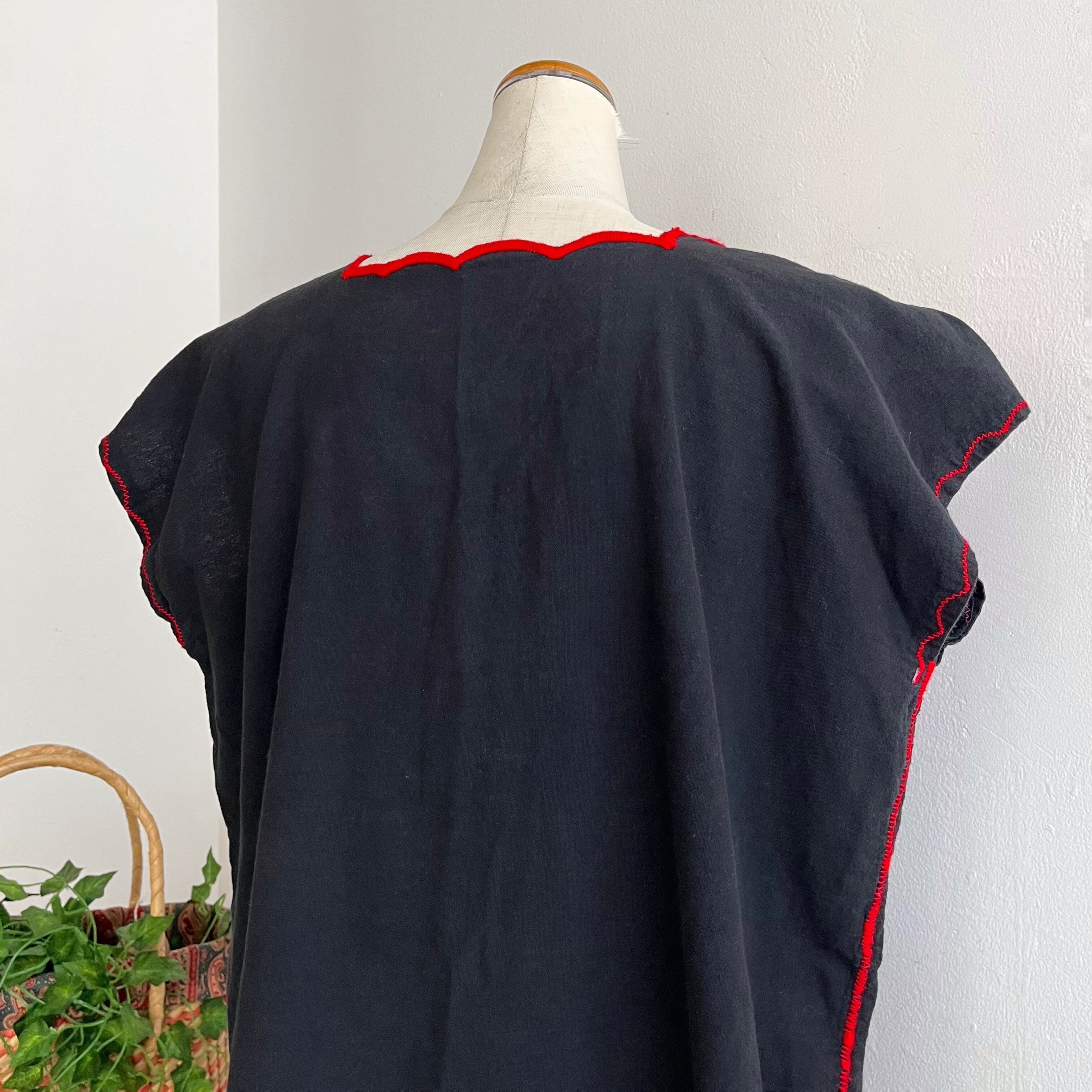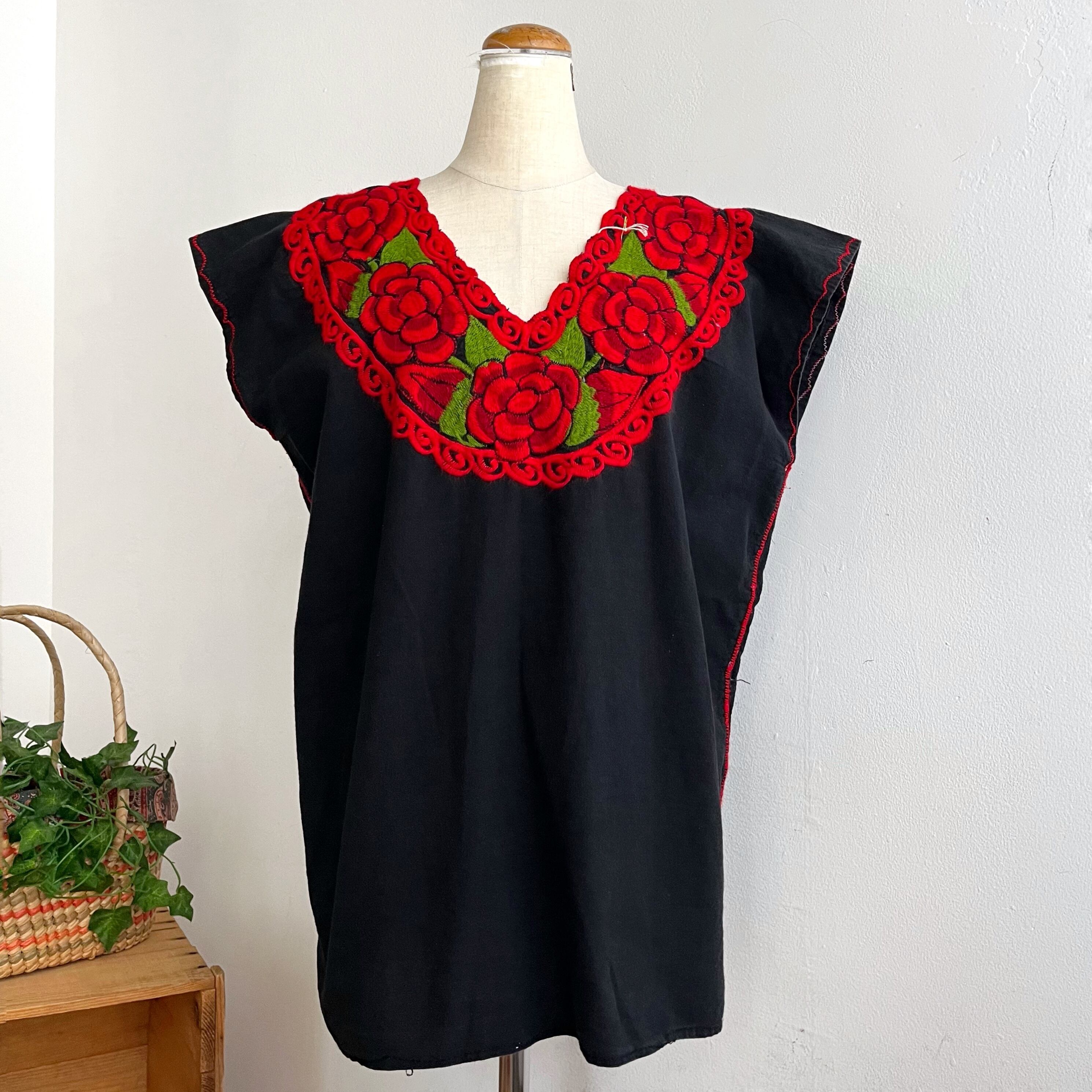 ブラックボディに赤いお花の刺繍が可愛いメキシカントップスです。