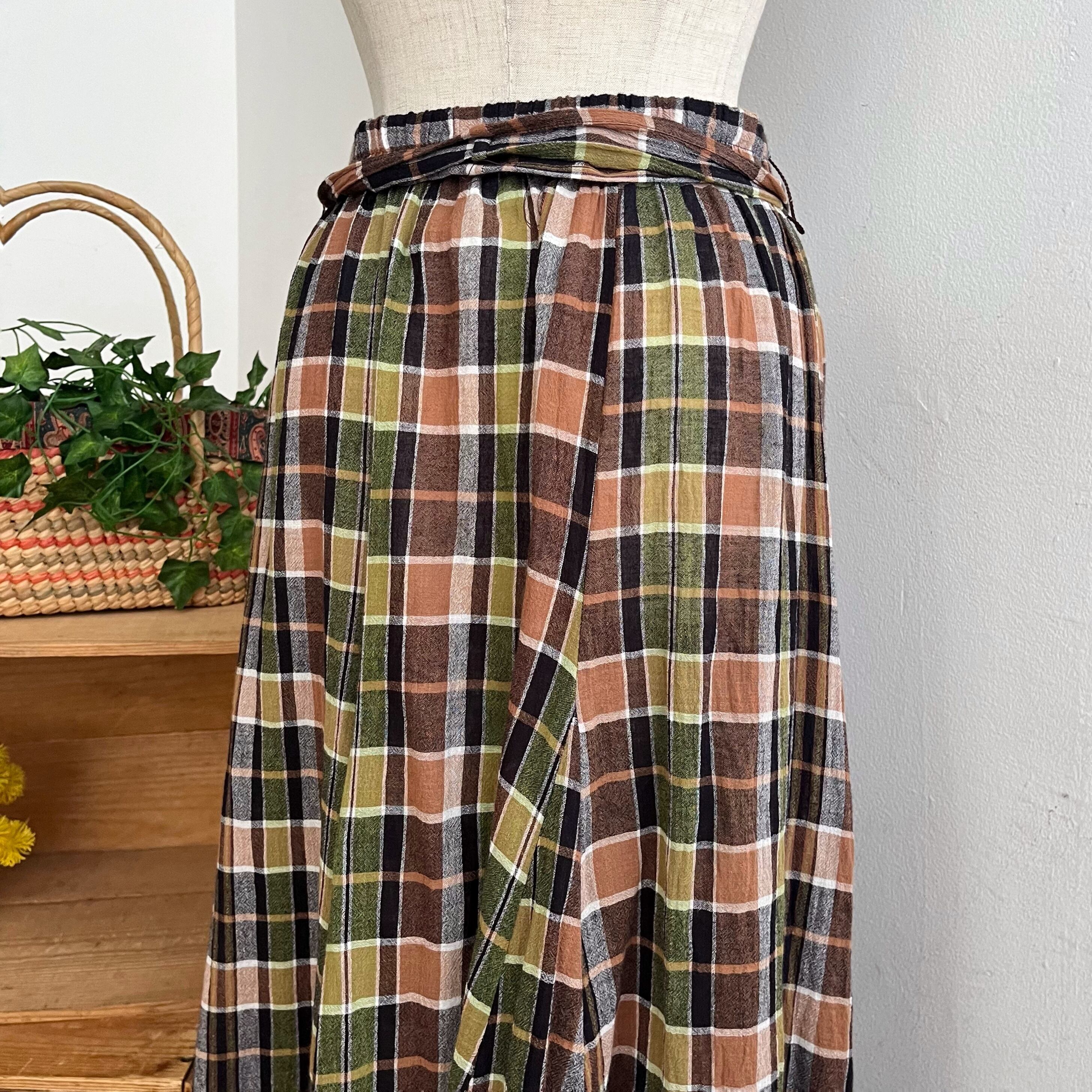 ブラウンカラーのチェック柄が可愛いロングスカートです。