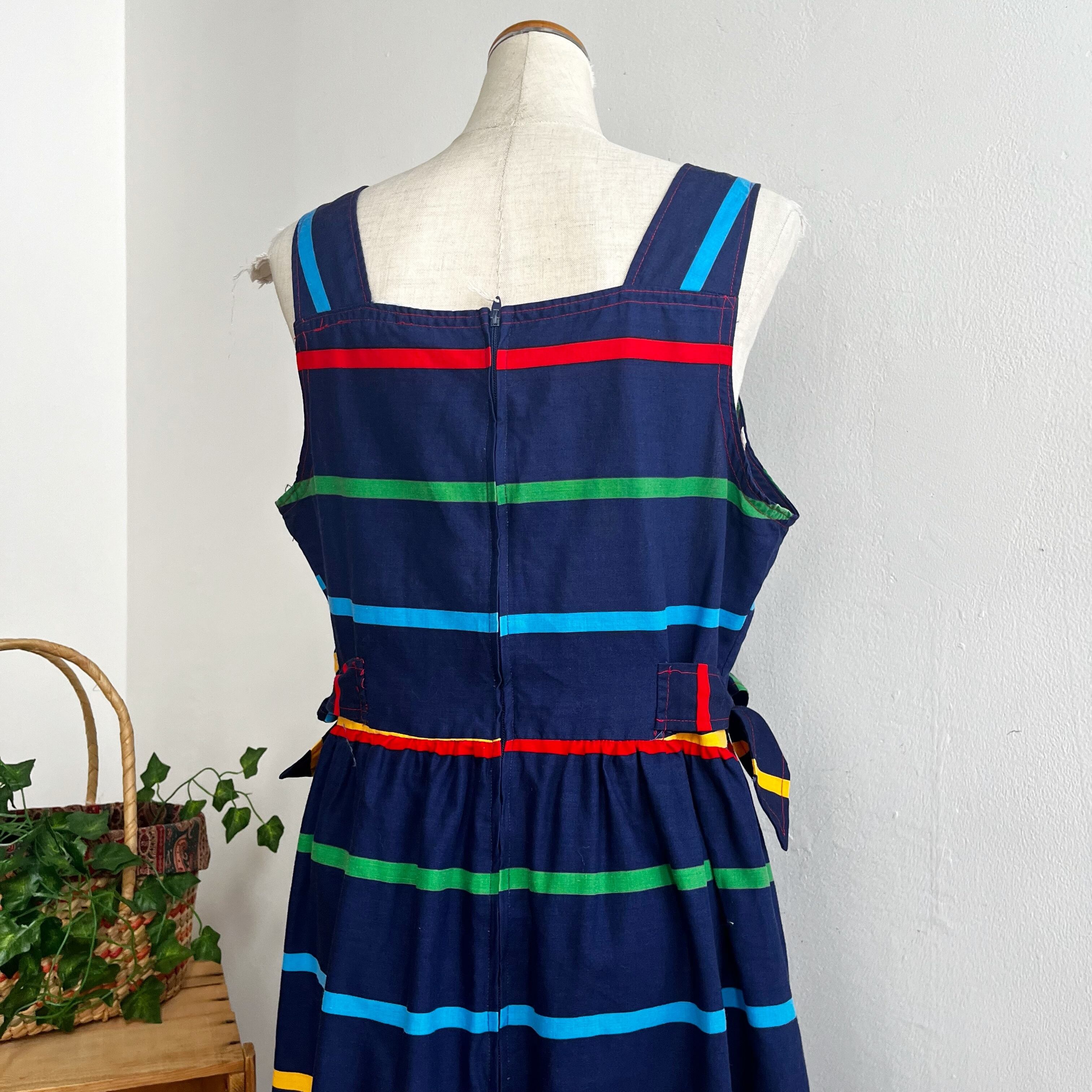 カラフルな色合いのボーダー柄が可愛いワンピースです。