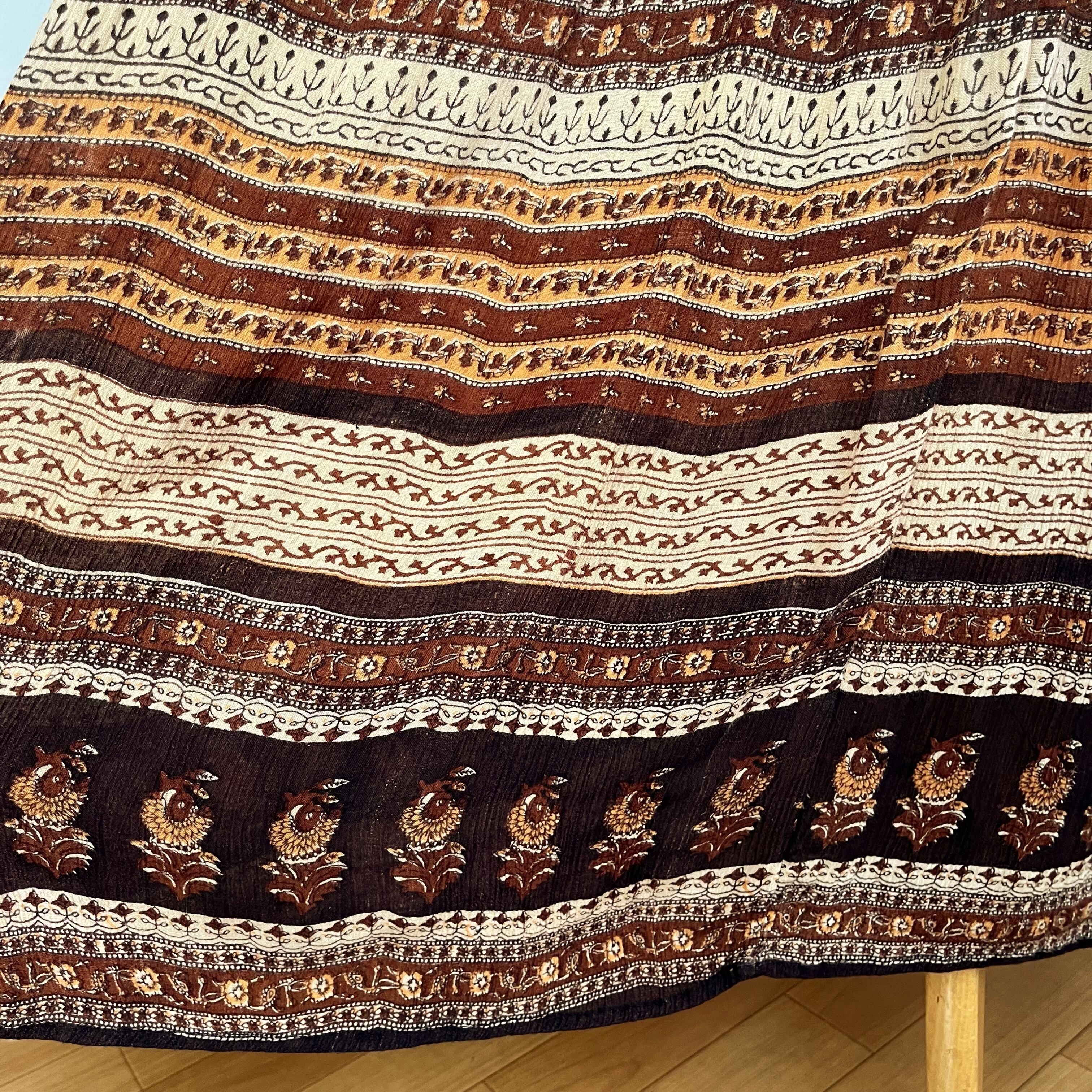 ブラウンのインドビスコースのロングスカートです。