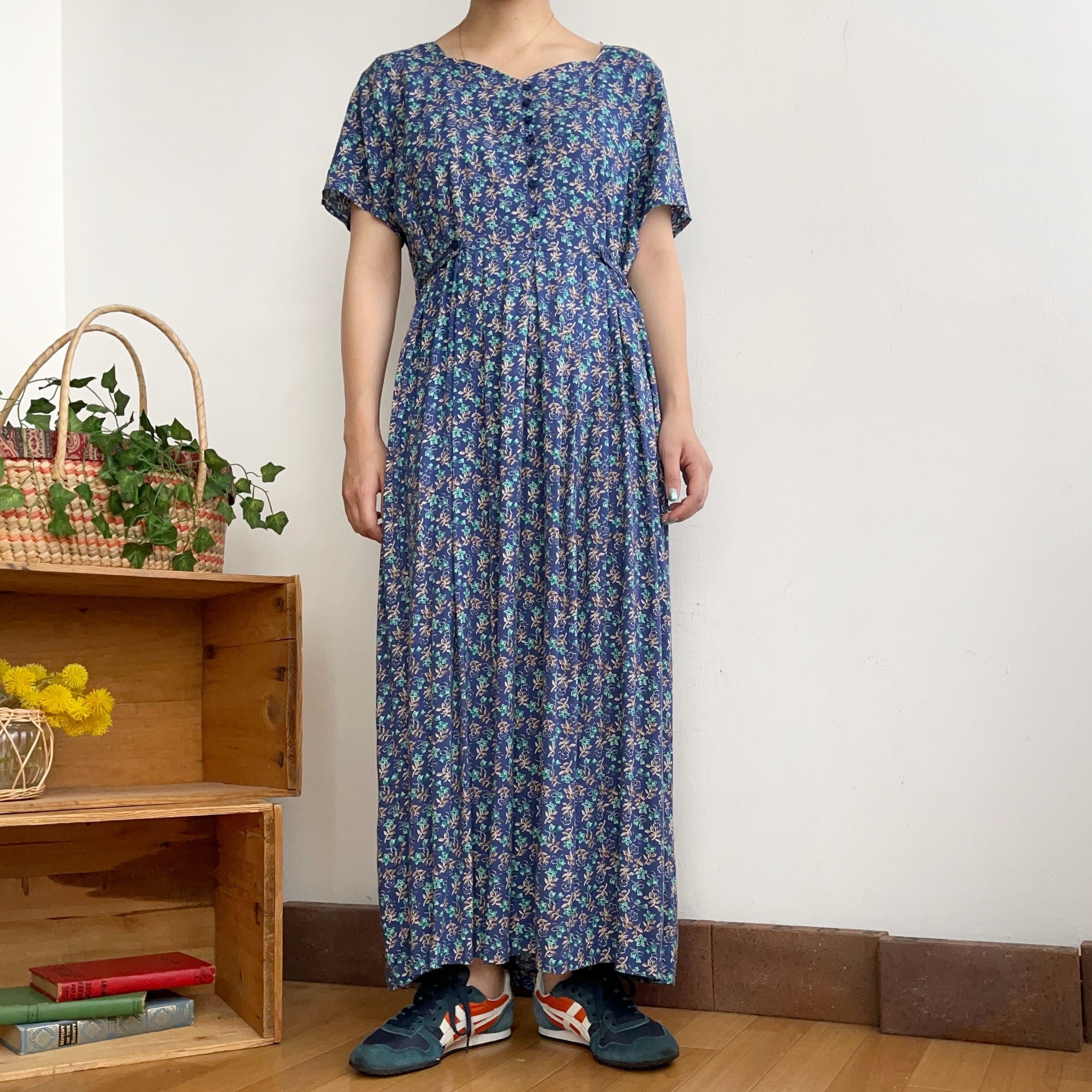 ブルーの小花柄が可愛いレーヨンワンピースです。