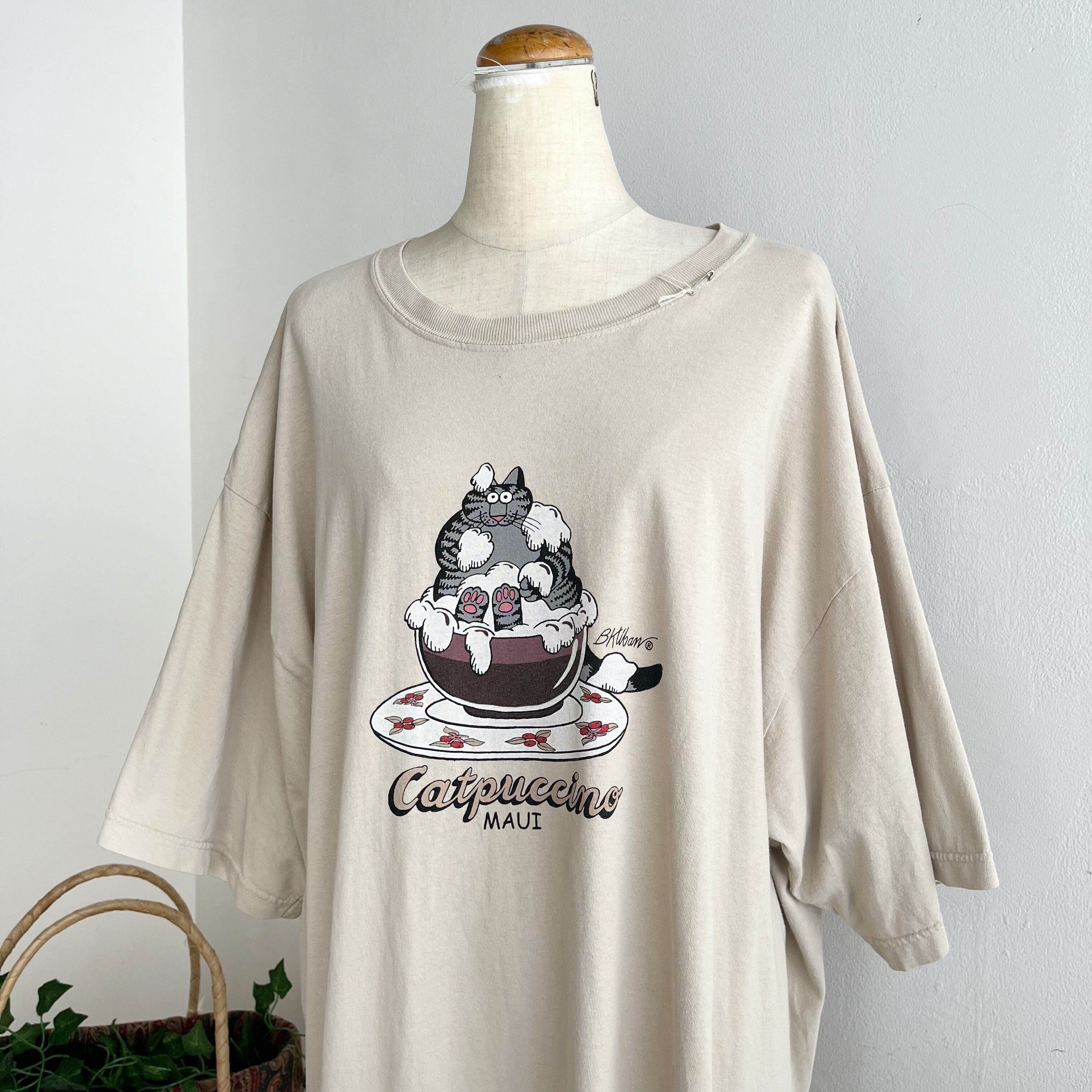 もっちり可愛いクリバンキャットがカプチーノのお風呂に入ったシュールでコミカルなプリント。