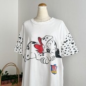袖がダルメシアンパターンになった古着ならではなデザインの101匹わんちゃんのTシャツです。