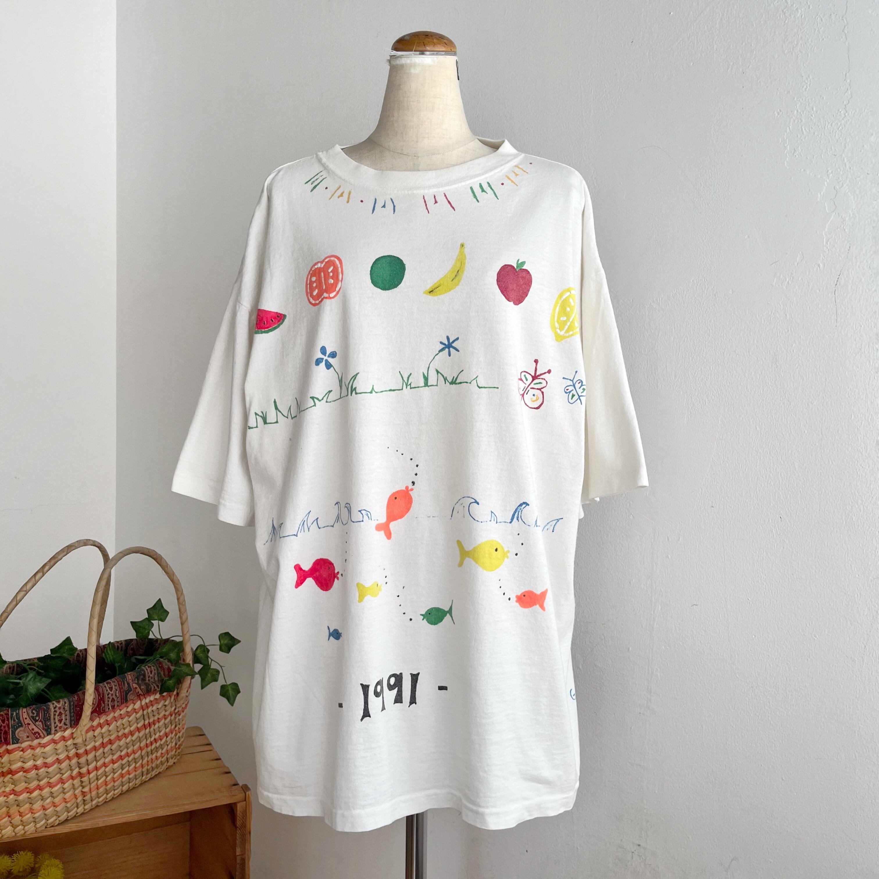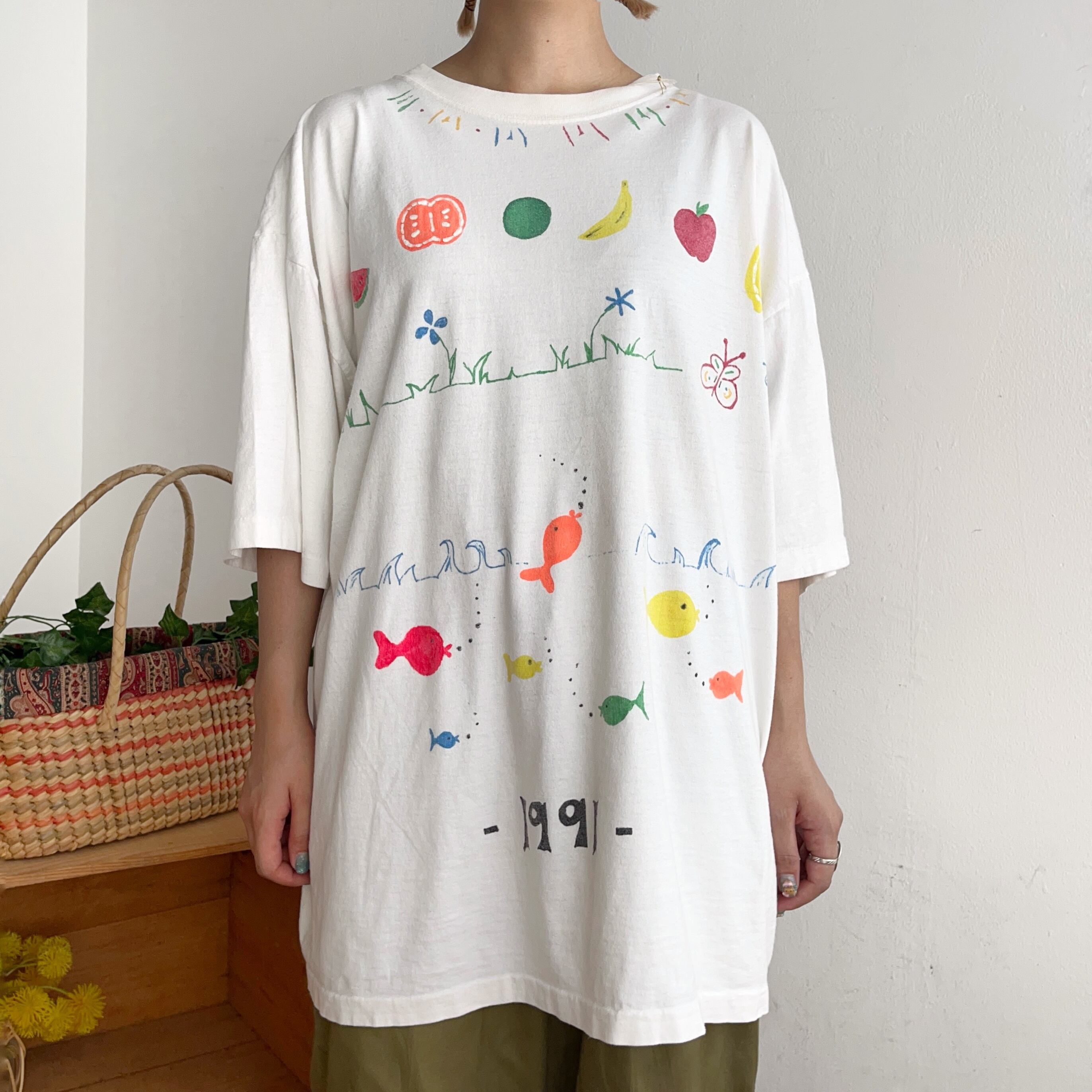 色々な絵柄がハンドペイントで入った古着らしさ溢れるTシャツです。