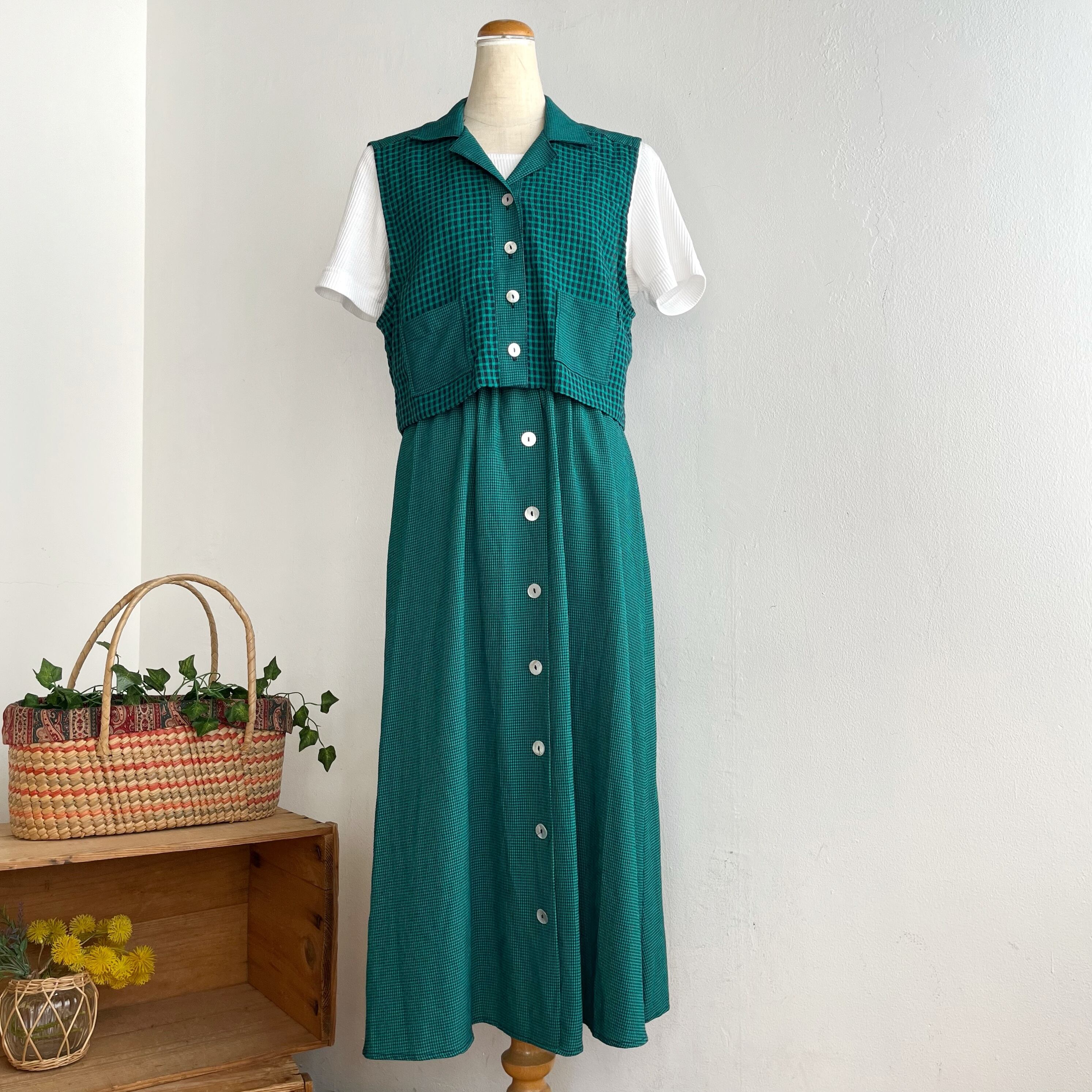 グリーンのチェック柄が可愛いレーヨンワンピースです。