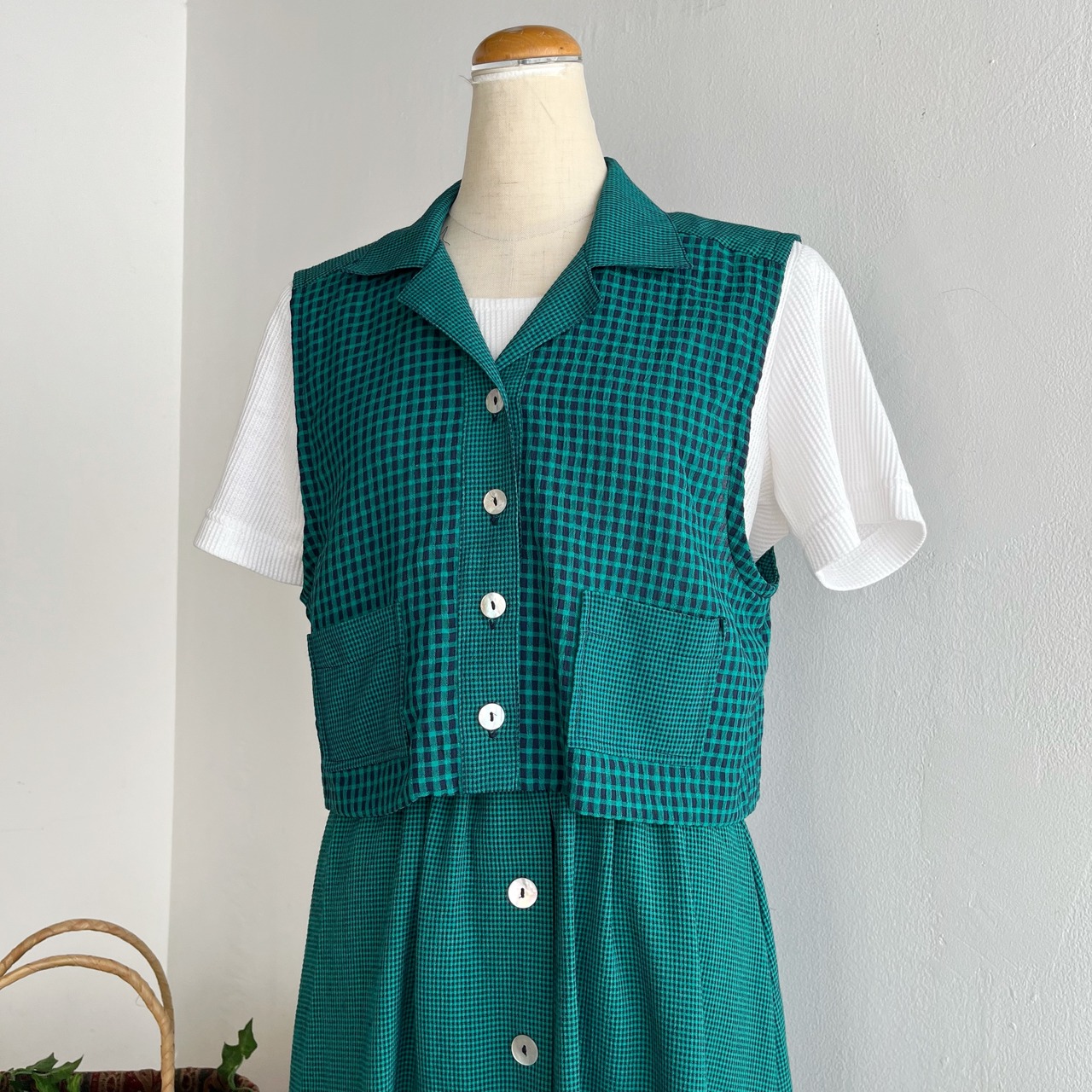 ベストがセットになったツーピースなのでセットで着たり、単体で着たりと色々なコーディネートで楽しんでもらえるかと。