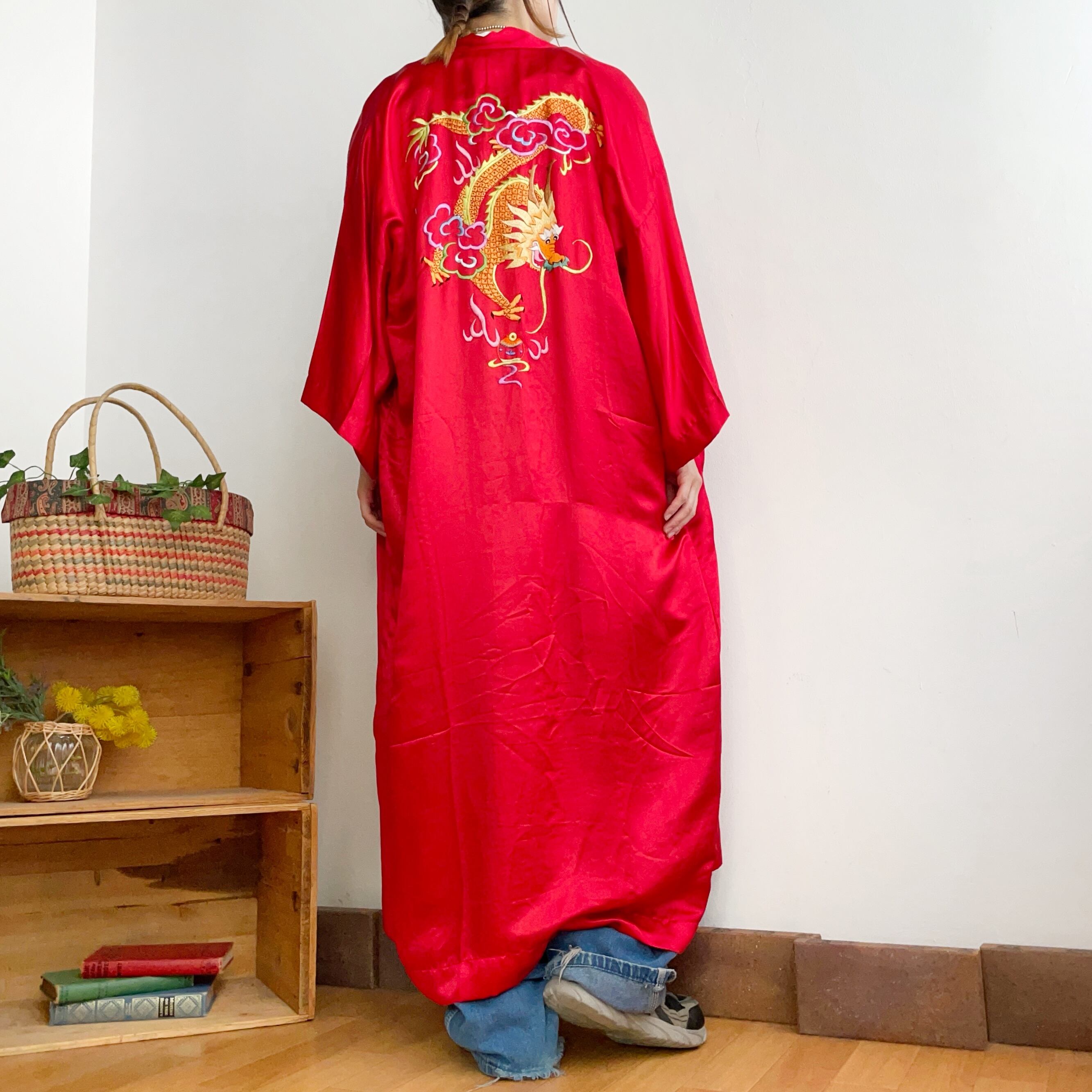 ドラゴン刺繍がインパクトたっぷりなヴィンテージのチャイナガウンです。