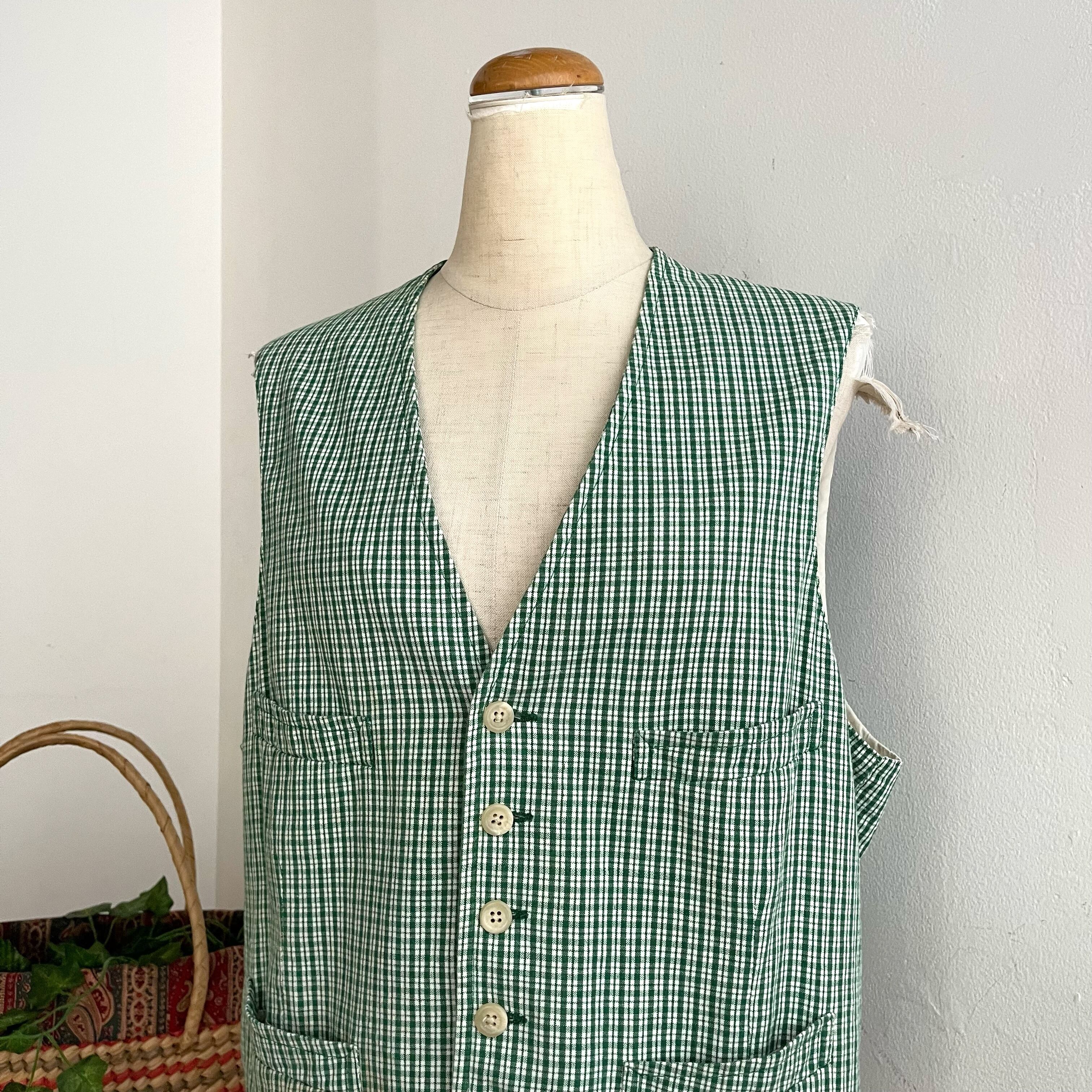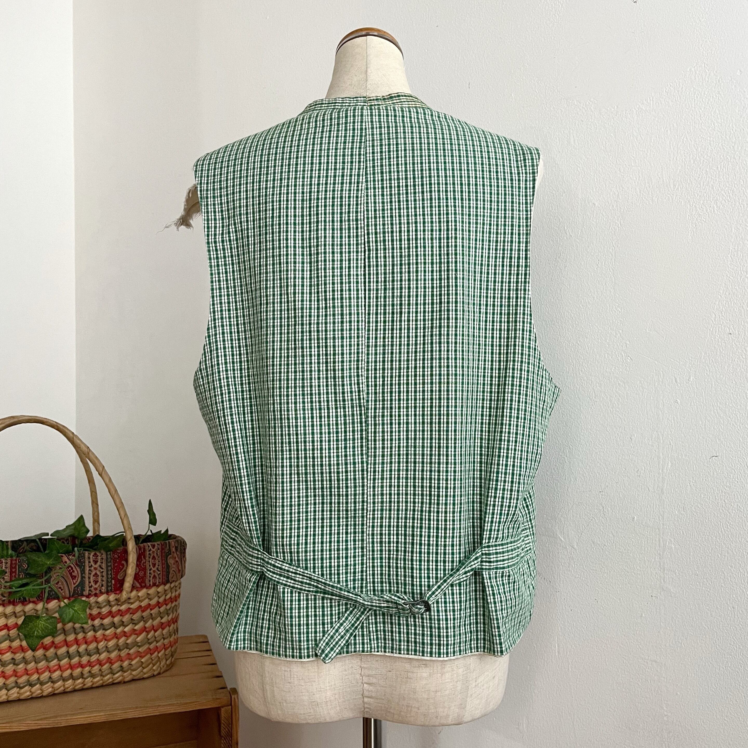 green plaid cotton vest
