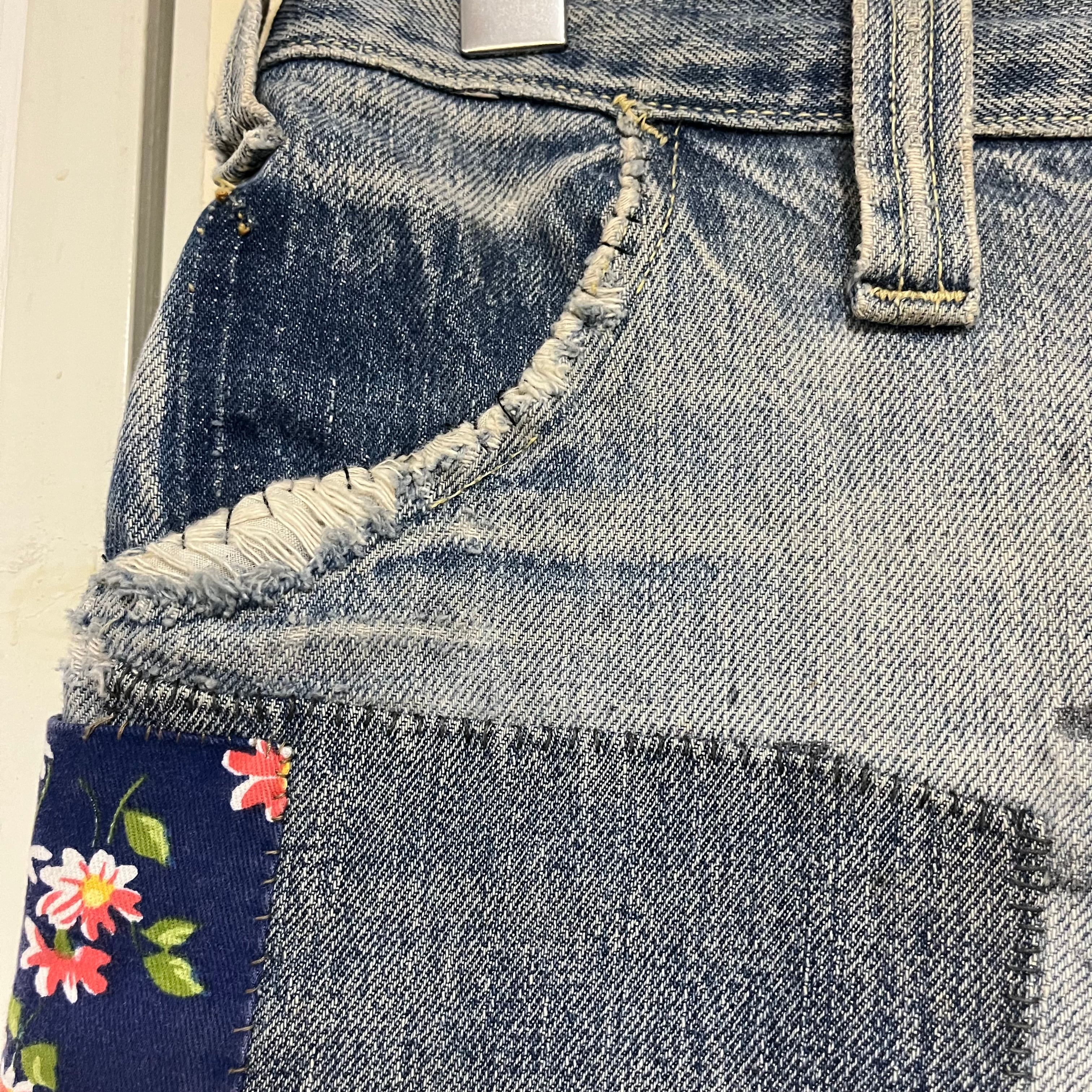 vintageのLeeのデニムを当時のヒッピーがカスタムした一点物のスペシャル過ぎるスカート。