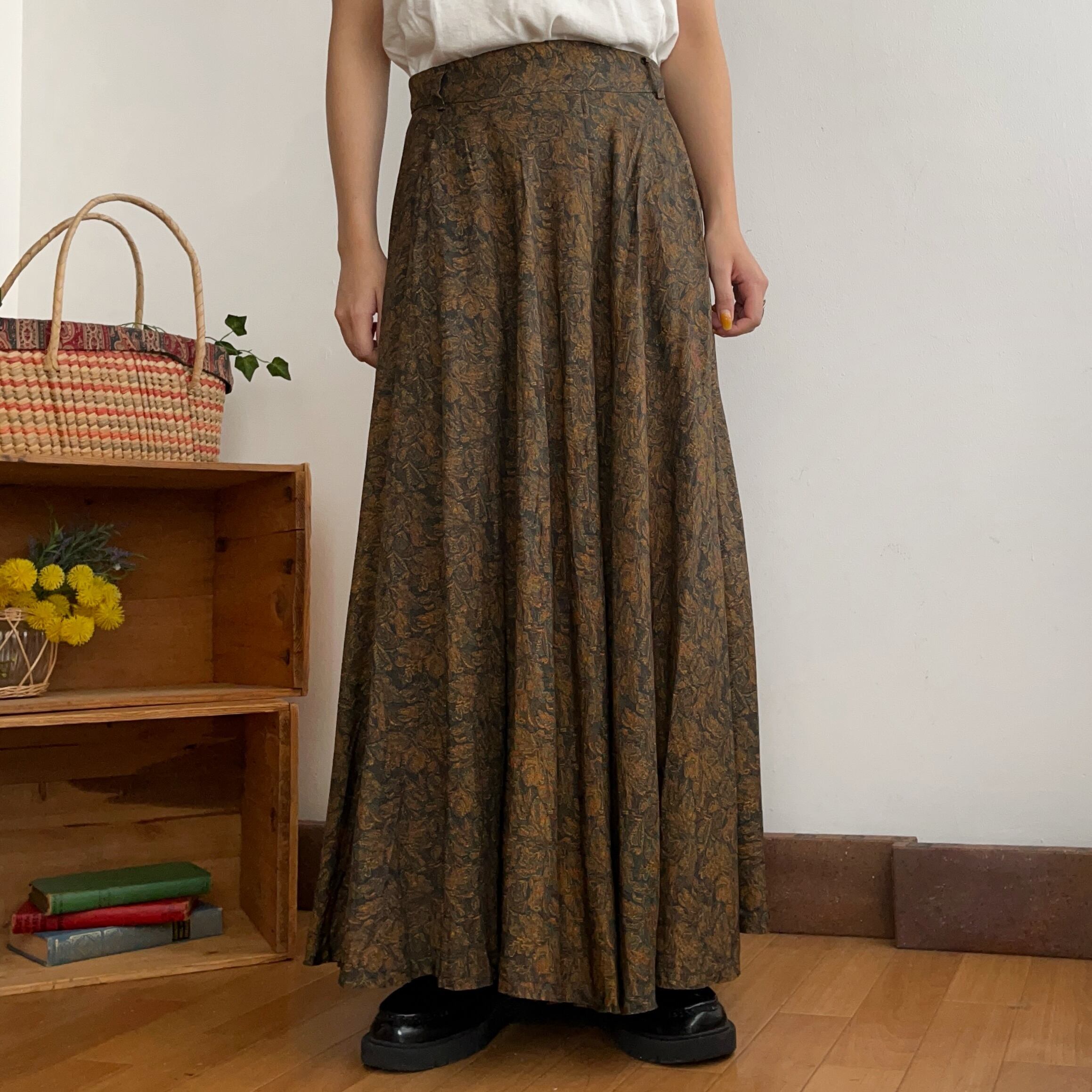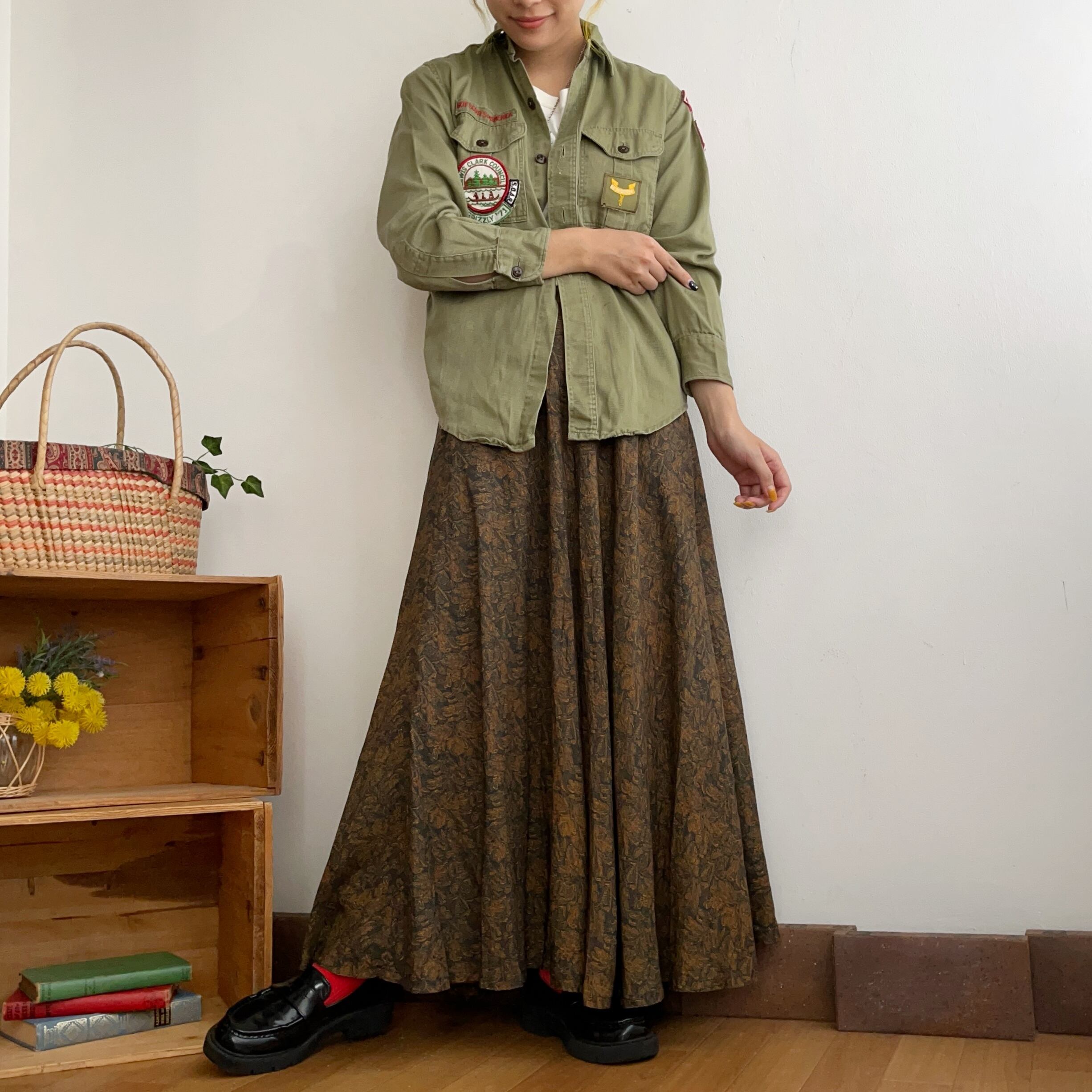 裾にかけてふんわりとAラインに広がるシルエットが素敵な花柄スカートです。