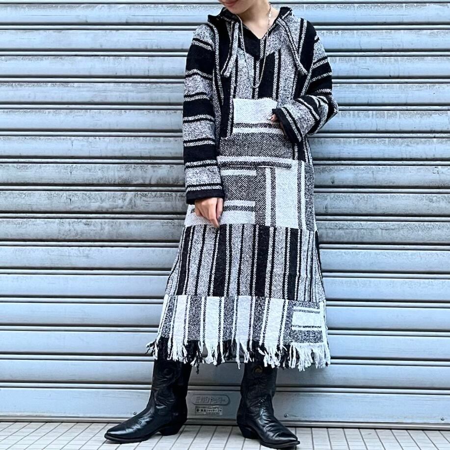 ブラックベースのメキシカンパーカーを使用してリメイクしたワンピースです。