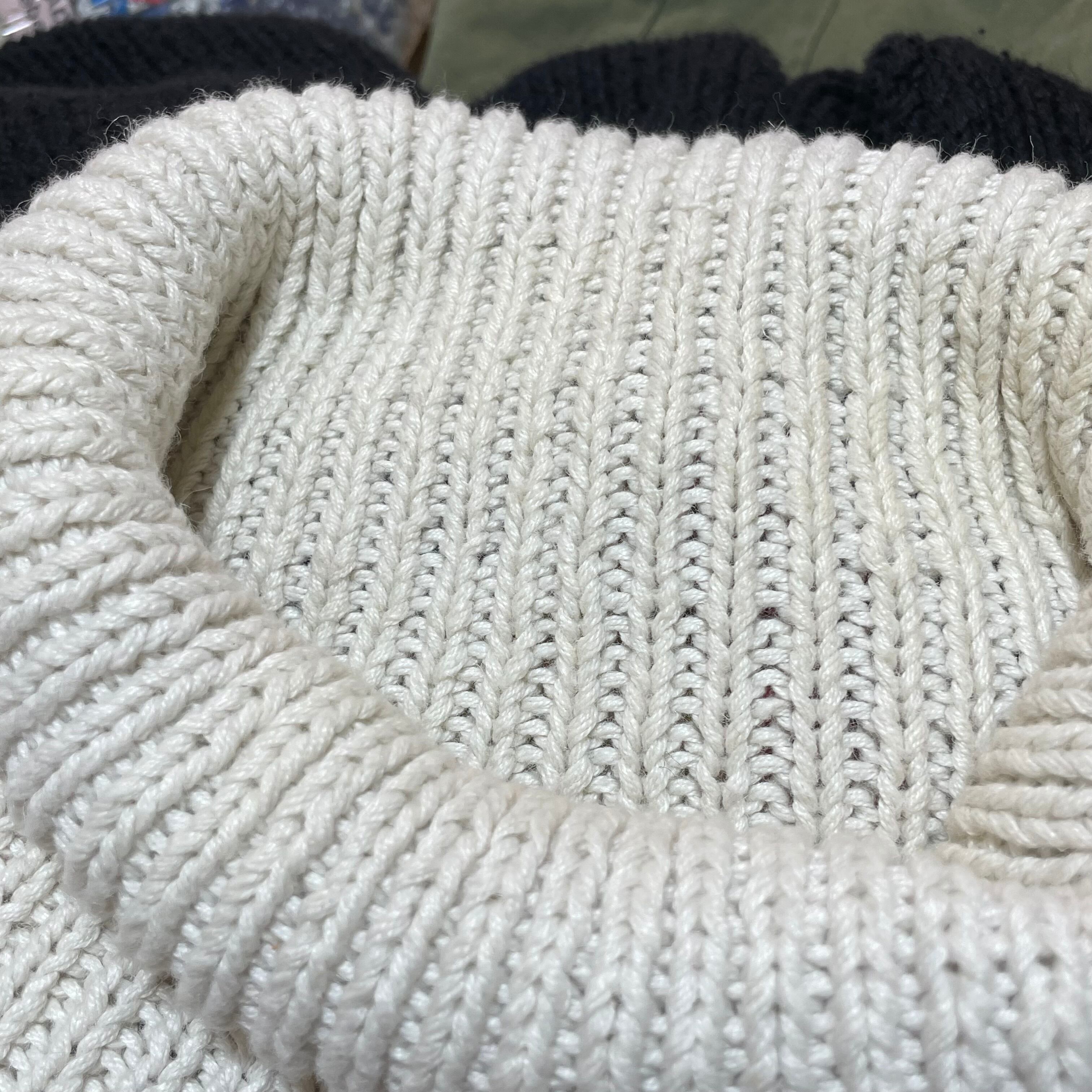 大きめのハイネックですがコットンニットなのでチクチク感の心配もなく着て頂けますよ。