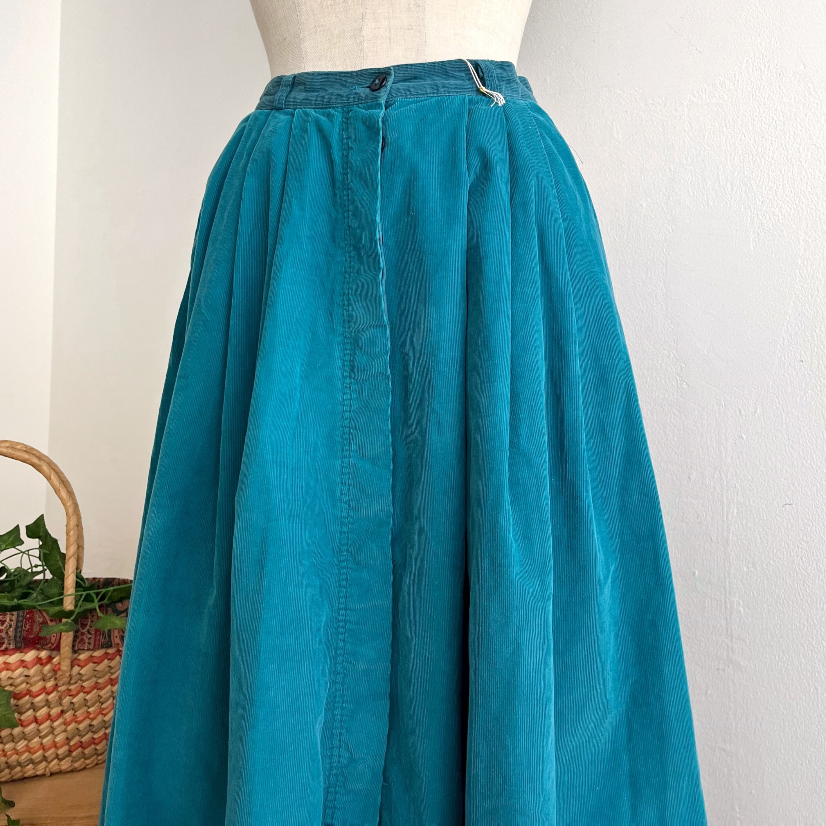 綺麗なターコイズブルーカラーのコーデュロイスカートです。